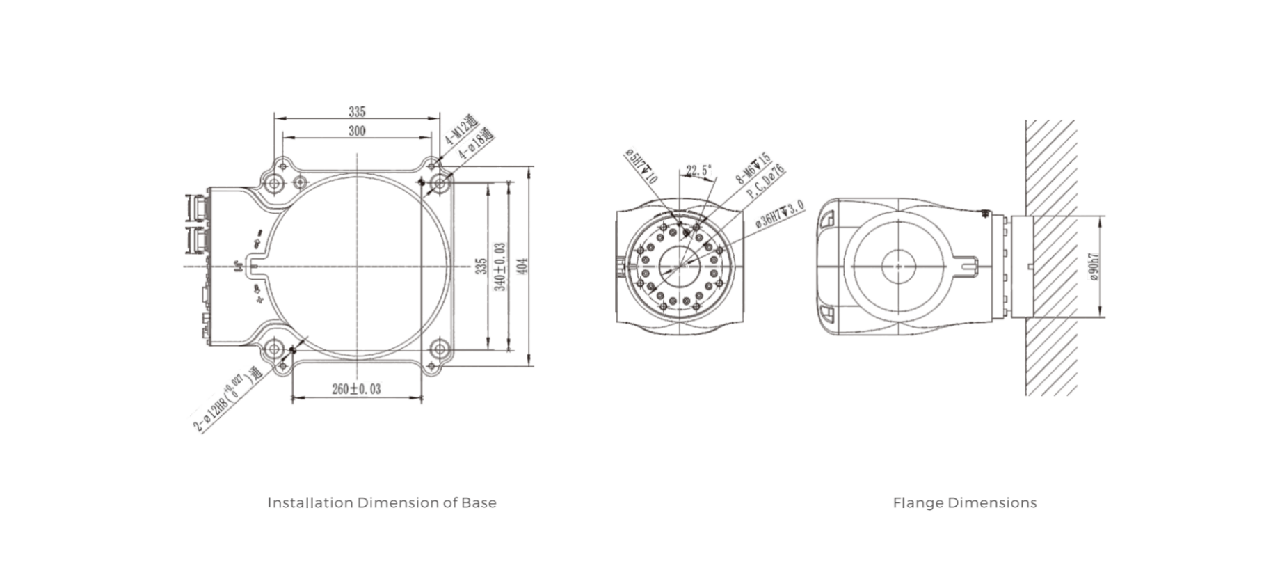 The robot in the axes of J2 J3 J4 is reserved installation holes to install fixed solenoid valve and other accessories. There are IO port and dual-circuit gas pipe at J3 axis to meet the handling application.