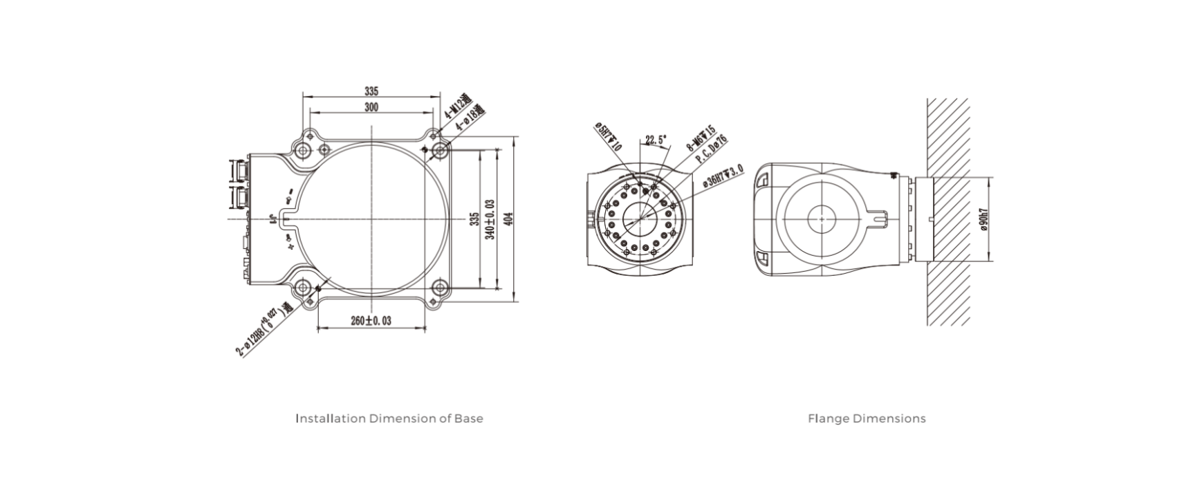 The robot in the axes of J2 J3 J4 is reserved installation holes to install fixed solenoid valve and other accessories. There are IO port and dual-circuit gas pipe at J3 axis to meet the handling application.