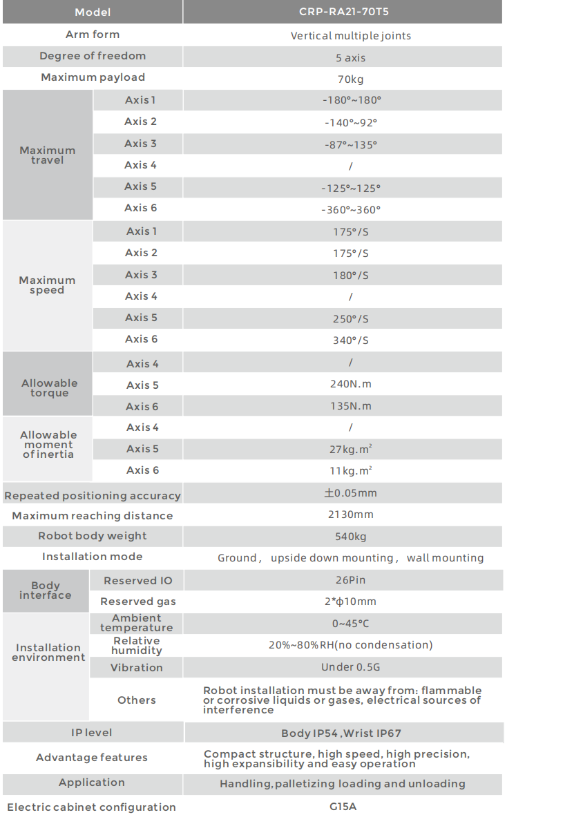 Arm span of 2.13m,strong load capacity, large working range and high flexibility.