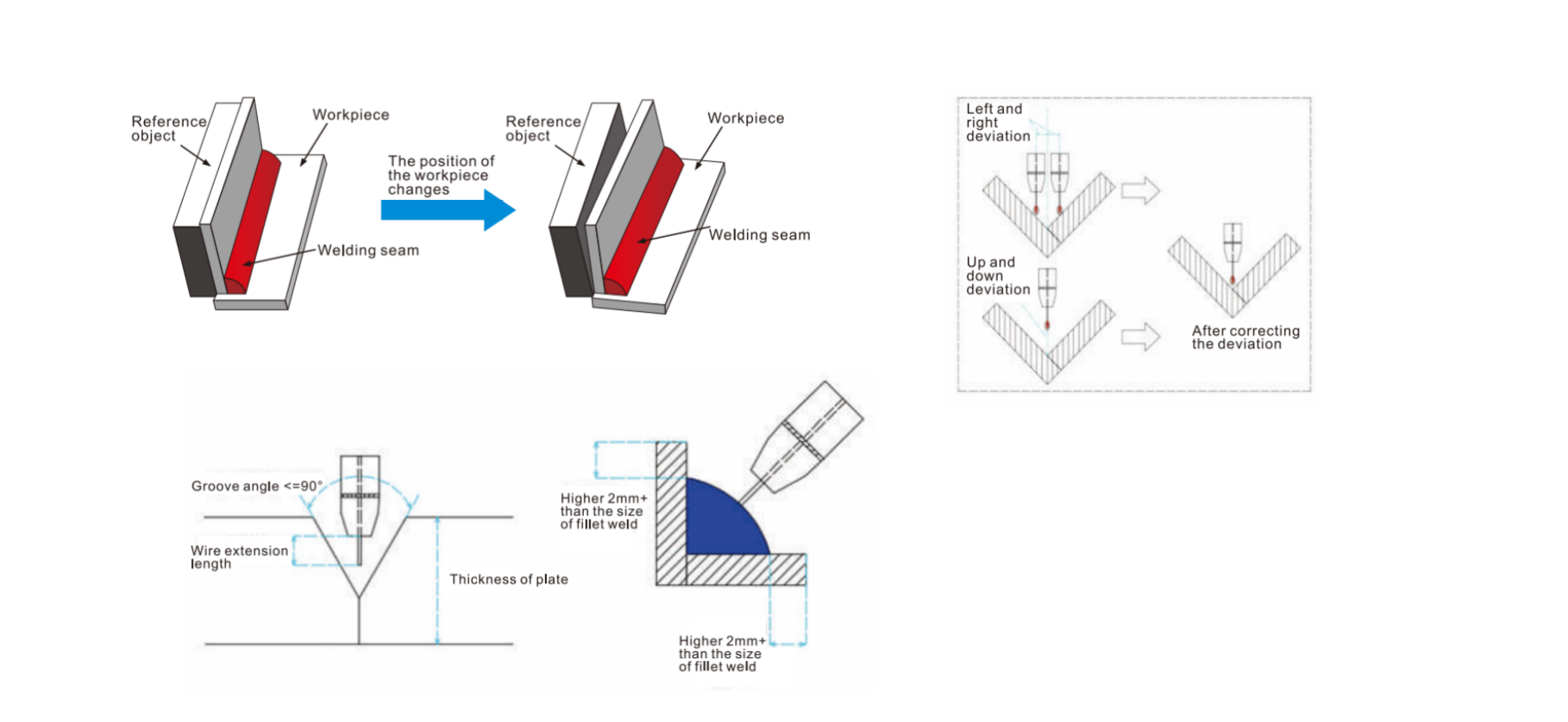 • This sensor is used when the welding seam of medium and thick plate workpiece is deformed or deviated in CO2/MAG welding process: