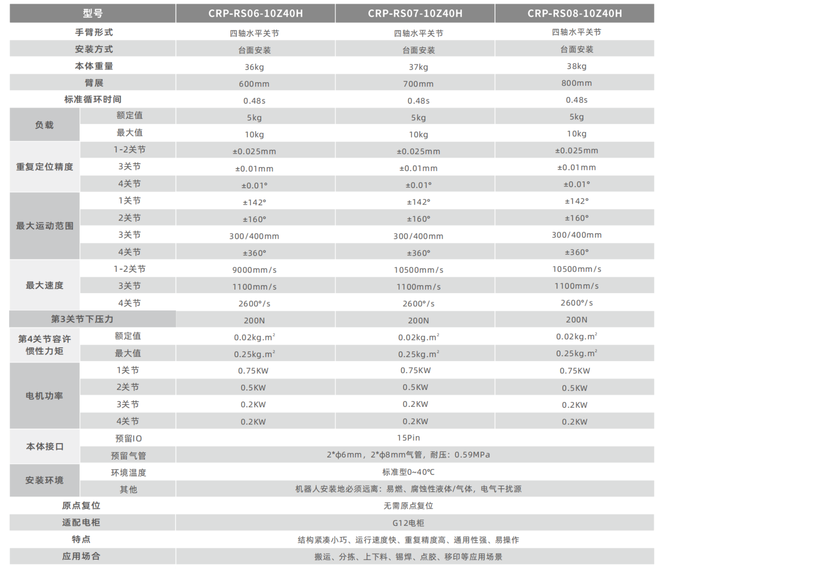? 可提供800毫米臂長(zhǎng)規(guī)格,最高有效負(fù)載可達(dá)10kg,額定有效負(fù)載為5kg。
