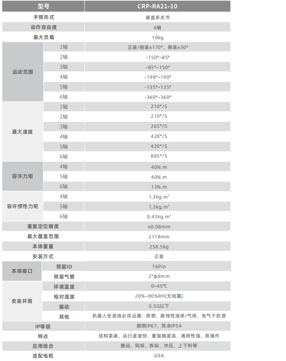 機(jī)器人整體結(jié)構(gòu)高度緊湊、輕量化,更加輕巧適用,尤其腕部更加小巧,滿足更多的場(chǎng)景。