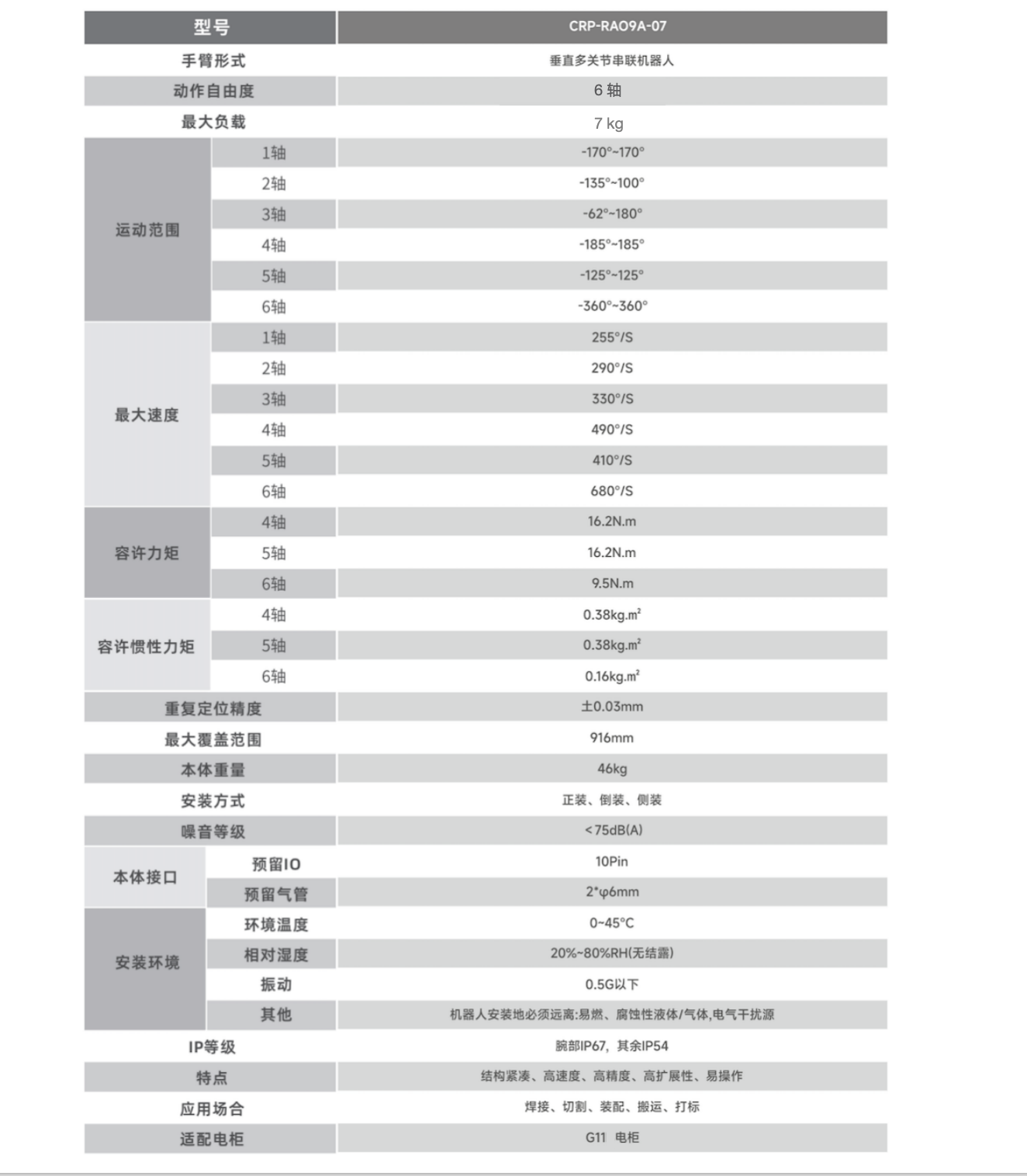臂長916mm,手腕負(fù)載容量大,額定負(fù)載7kg,可輕松應(yīng)對(duì)多種應(yīng)用場(chǎng)合。