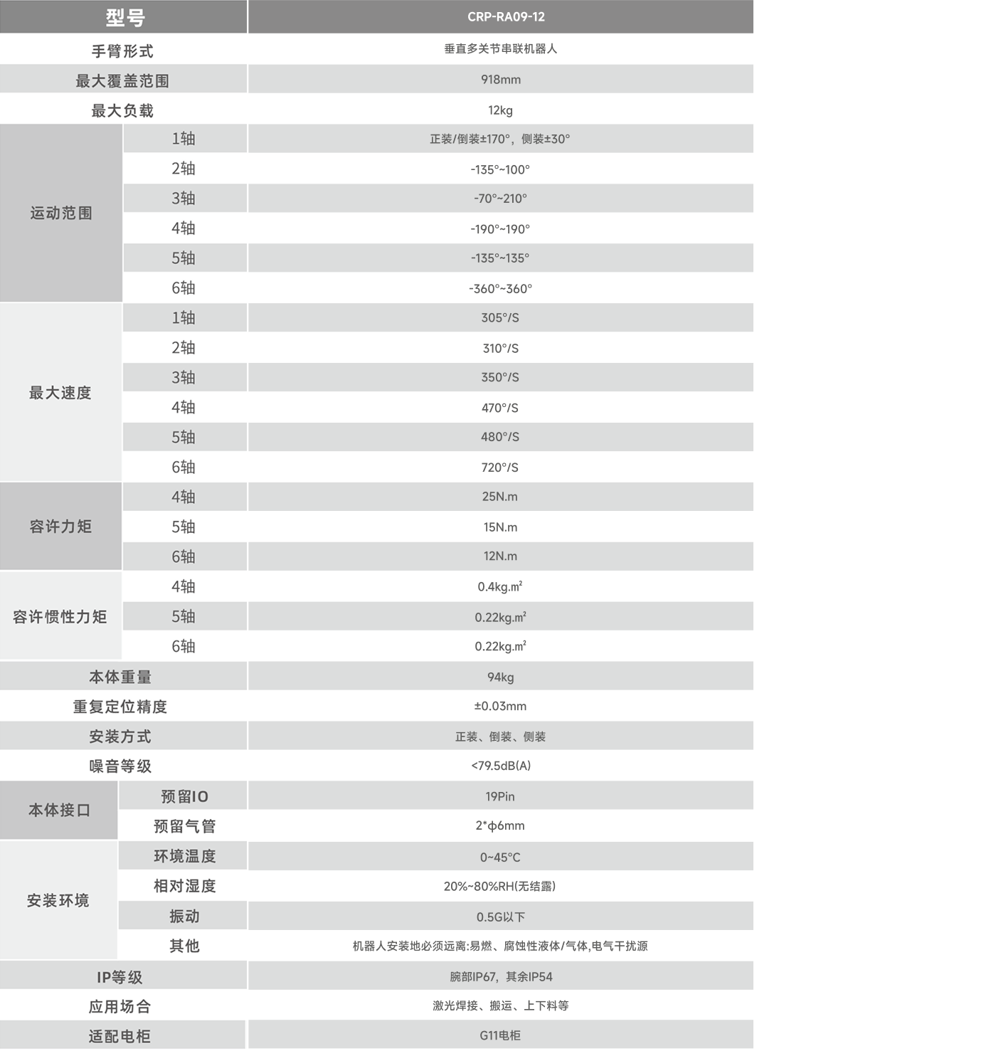 機(jī)器人負(fù)載12kg,臂展為900mm,機(jī)器人手腕具備更高的扭矩和慣量,負(fù)載承受能力更強(qiáng),應(yīng)用的場景更廣。