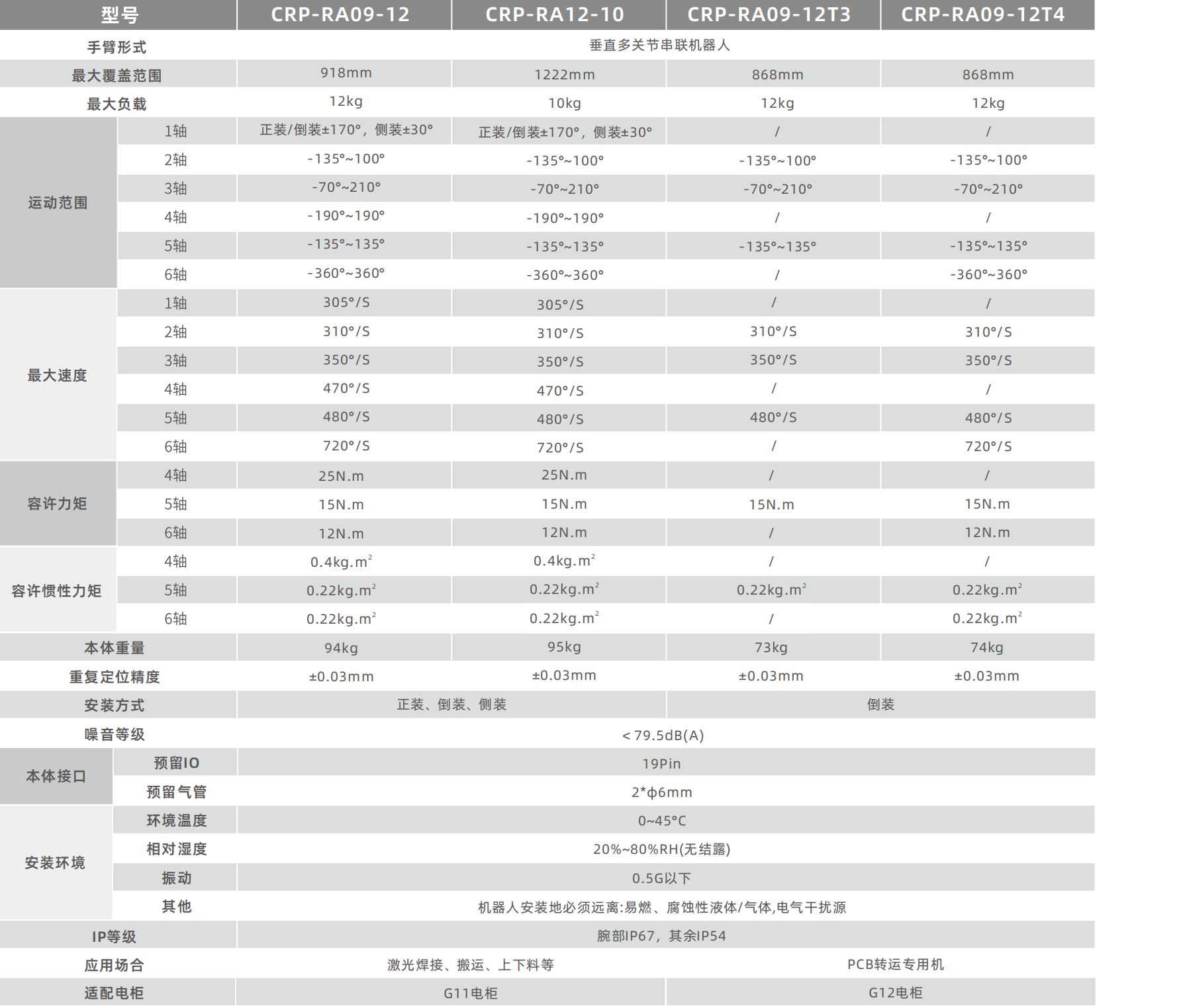 高速高精,效率更高。整機采用全鋁機身設(shè)計,較同級別產(chǎn)品質(zhì)量更輕,RA09-12系列相比RA09A-07系列左右速度提高了30%,標準門型軌跡0.42S,重復(fù)定位精度士0.03mm,實現(xiàn)快速生效,提高生產(chǎn)產(chǎn)能。